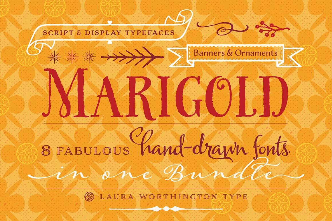 Marigold: Bundle of 8 Fabulous, Hand-drawn Fonts from Laura Worthington