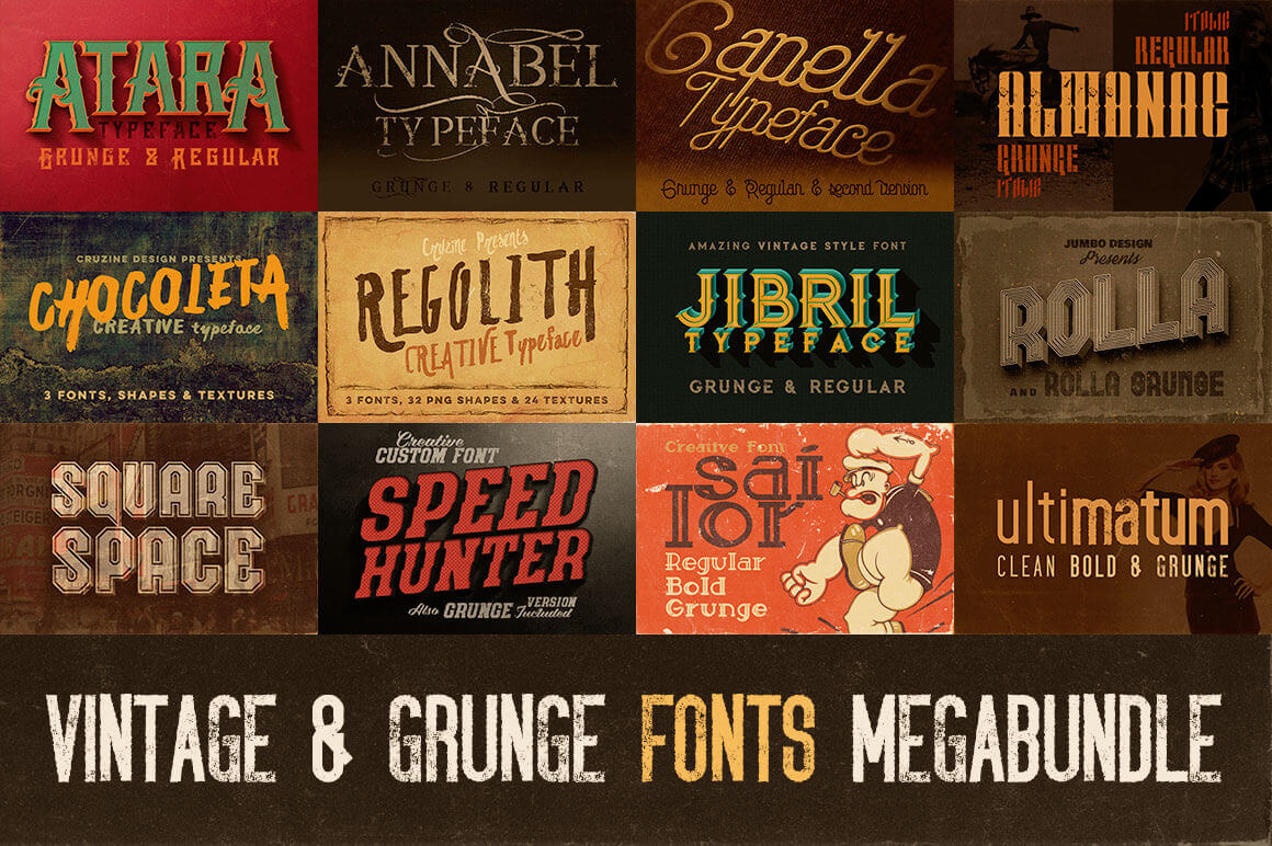 Mega Bundle of 48 Vintage, Grunge Fonts - only $19!
